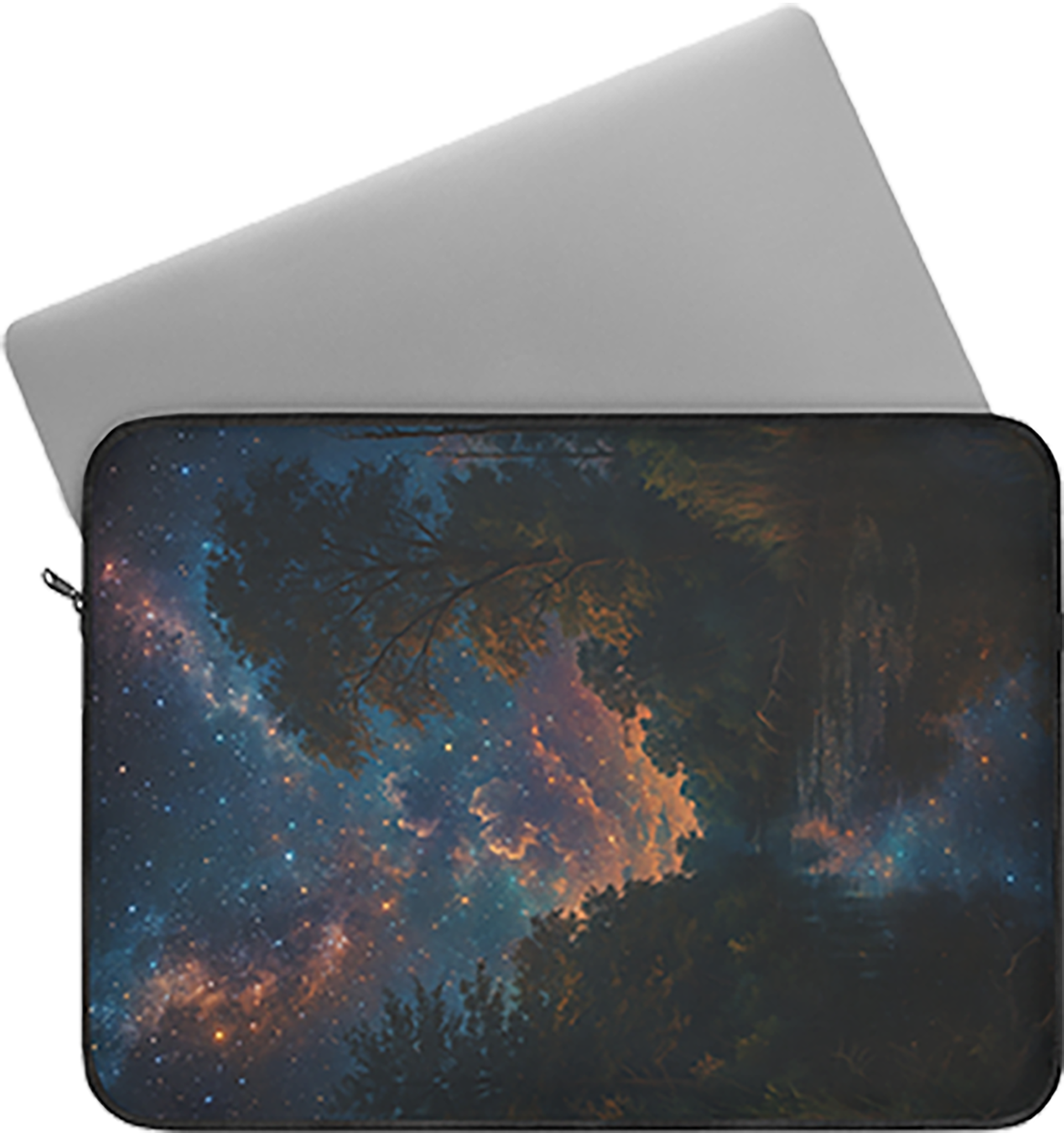 Protect your tech in celestial style with Starlit Canopy, a laptop sleeve that blends function with artistry. The cosmic forest design captures the wonder of starlight breaking through treetops, evoking calm and creativity wherever you go. Designed for both professionals and dreamers, it’s the ideal companion for work, travel, or quiet inspiration between projects.
